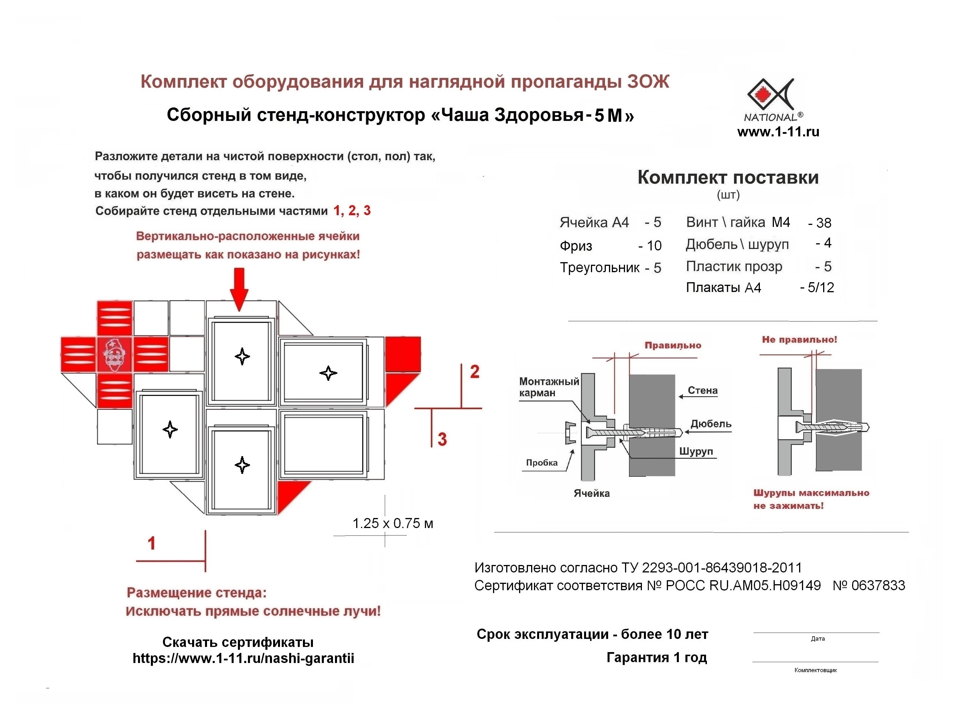 Все элементы сборных стендов-конструкторов изготавливаются методом литья пластика в пресс-формах - всегда в наличии большое к-во. Упаковываются в картонные коробки 25х38х19 см. Сборка стендов NATIONAL® проста, производится на месте размещения, элементы скрепляются парами винт/гайка М4. Вес с упаковкой около 4-х кг. Наиболее популярны сборки с красным декором. Детали формирующие образный крест выполнены со сквозными овальными пазами, придают всему стенду 3D эффект. Символ медицины - образ Доктора - выполнен глубоким барельефным тиснением фольгой по пластику. Срок эксплуатации более 10 лет. Действующие сертификаты.