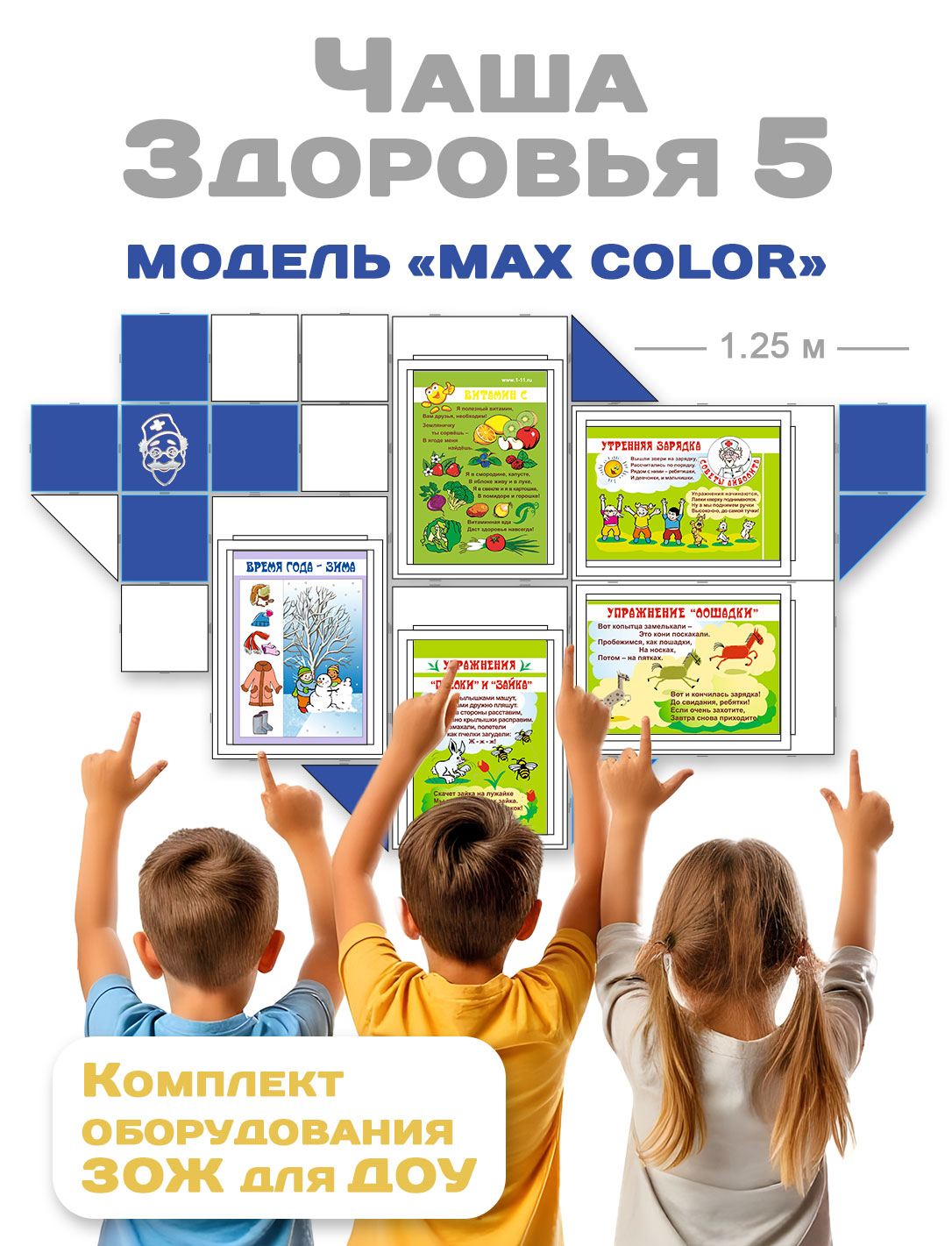 Комплект оборудования NATIONAL® (цвет синий) для наглядной пропаганды здорового образа жизни (ЗОЖ, стенд+плакаты) для ДОУ, начальных классов школ, больниц, поликлиник, др. учреждений - «Чаша Здоровья - 5М» - оптимальное решение в подборе наглядных инструментов пропаганды ЗОЖ от производственной компании НАЦИОНАЛЬ г Москва. Торговая марка NATIONAL® (НАЦИОНАЛЬ®).