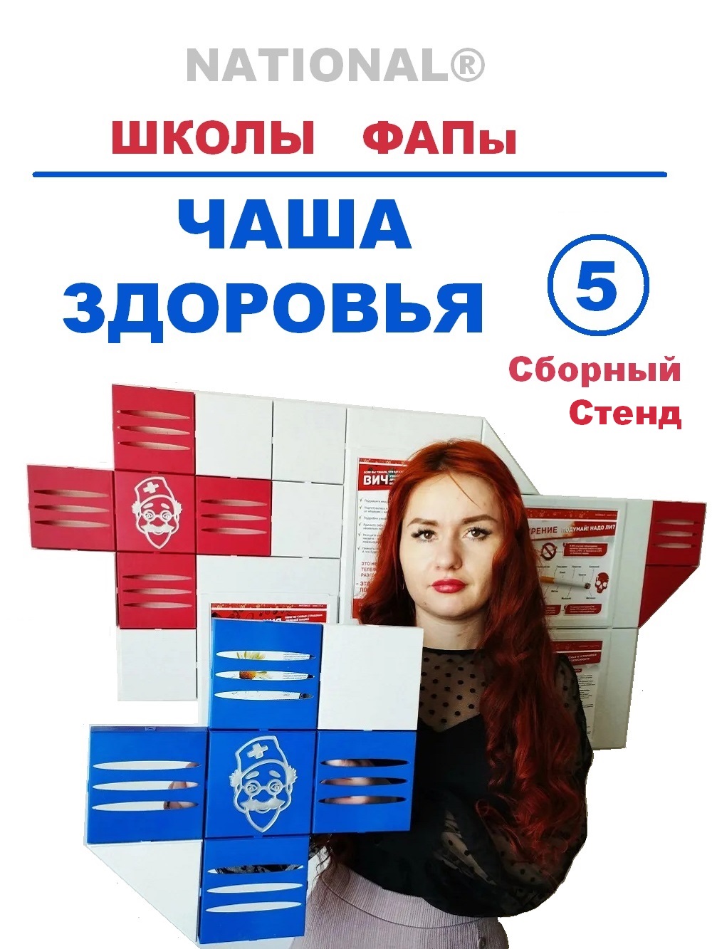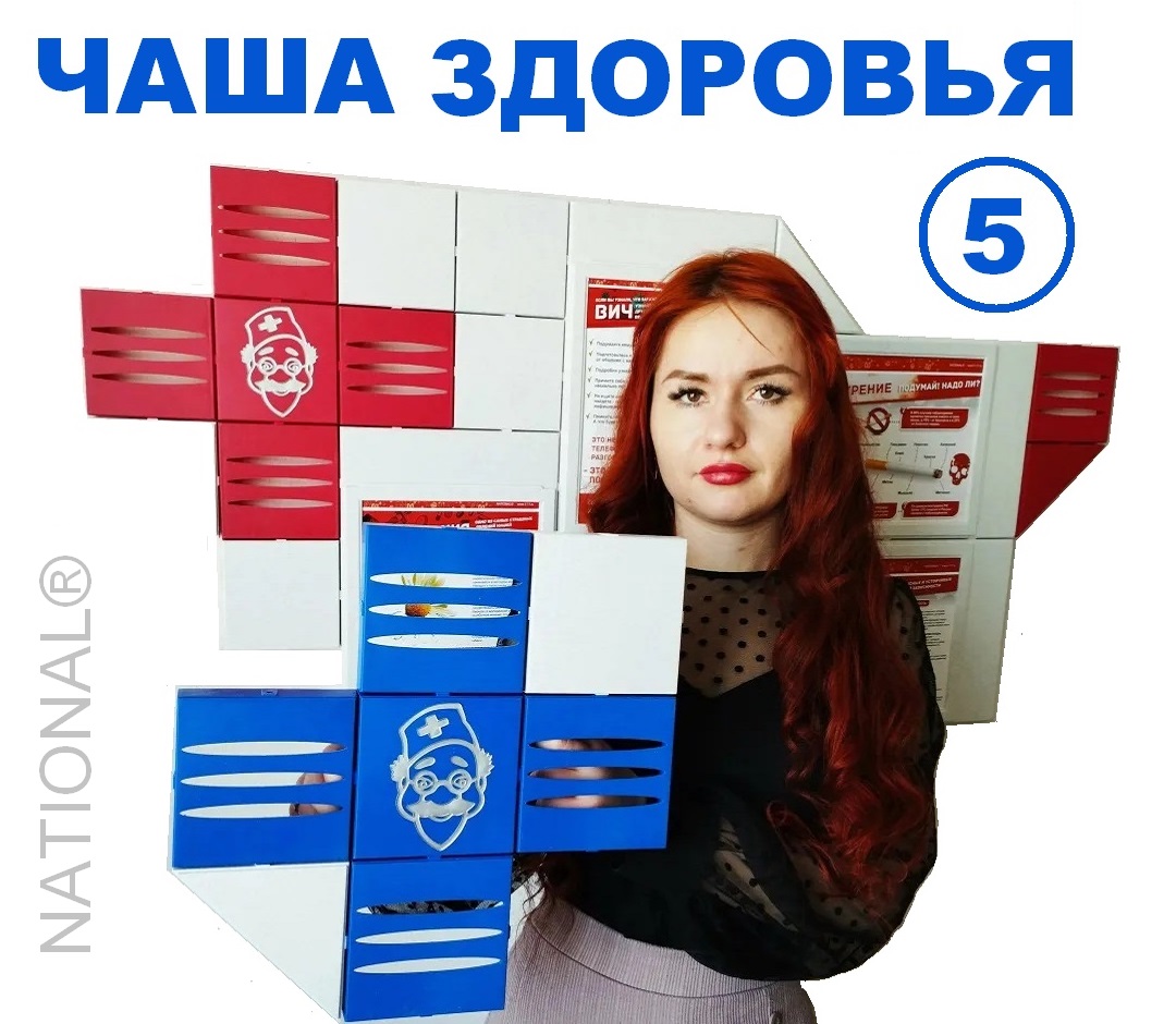 Комплект оборудования ЗОЖ «Чаша Здоровья 5» на основе сборного стенда NATIONAL® от компании НАЦИОНАЛЬ. Синий цвет декора.